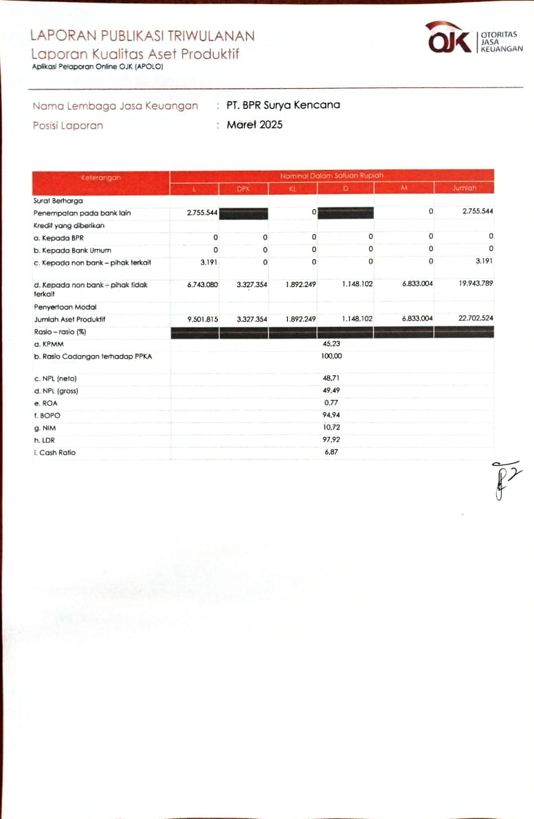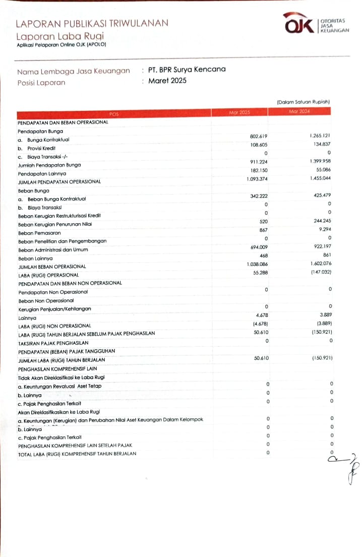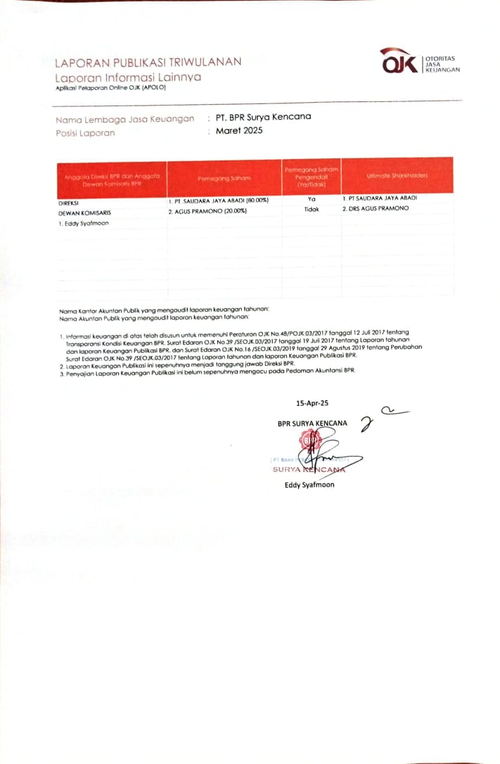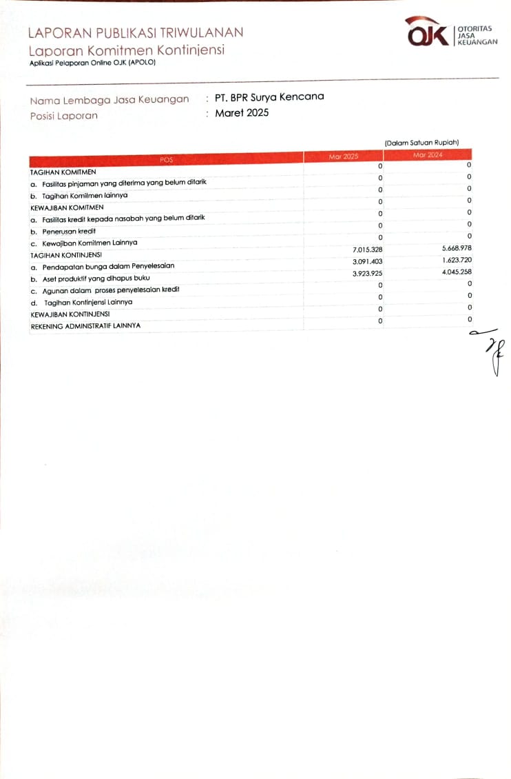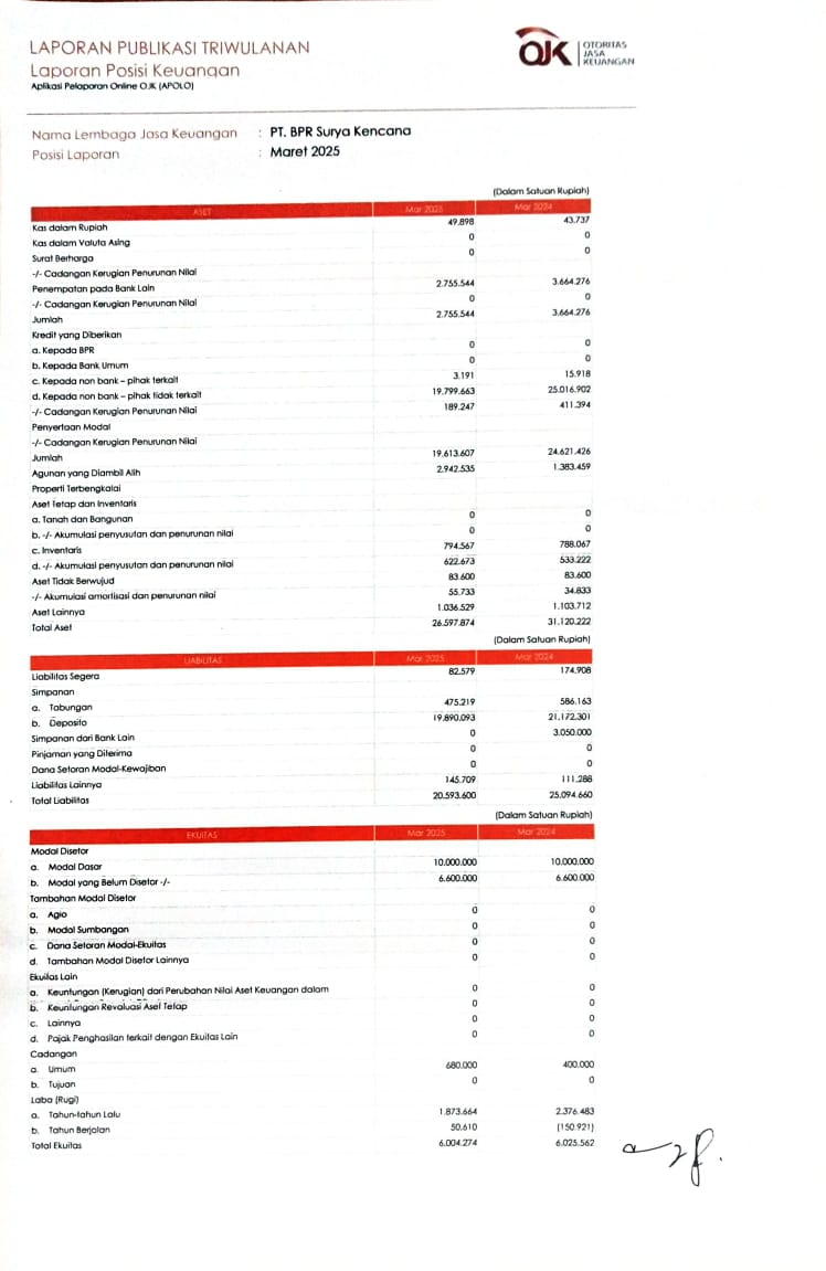 Laporan Publikasi Triwulan I ( Maret 2025 ) BPR Surya Kencana