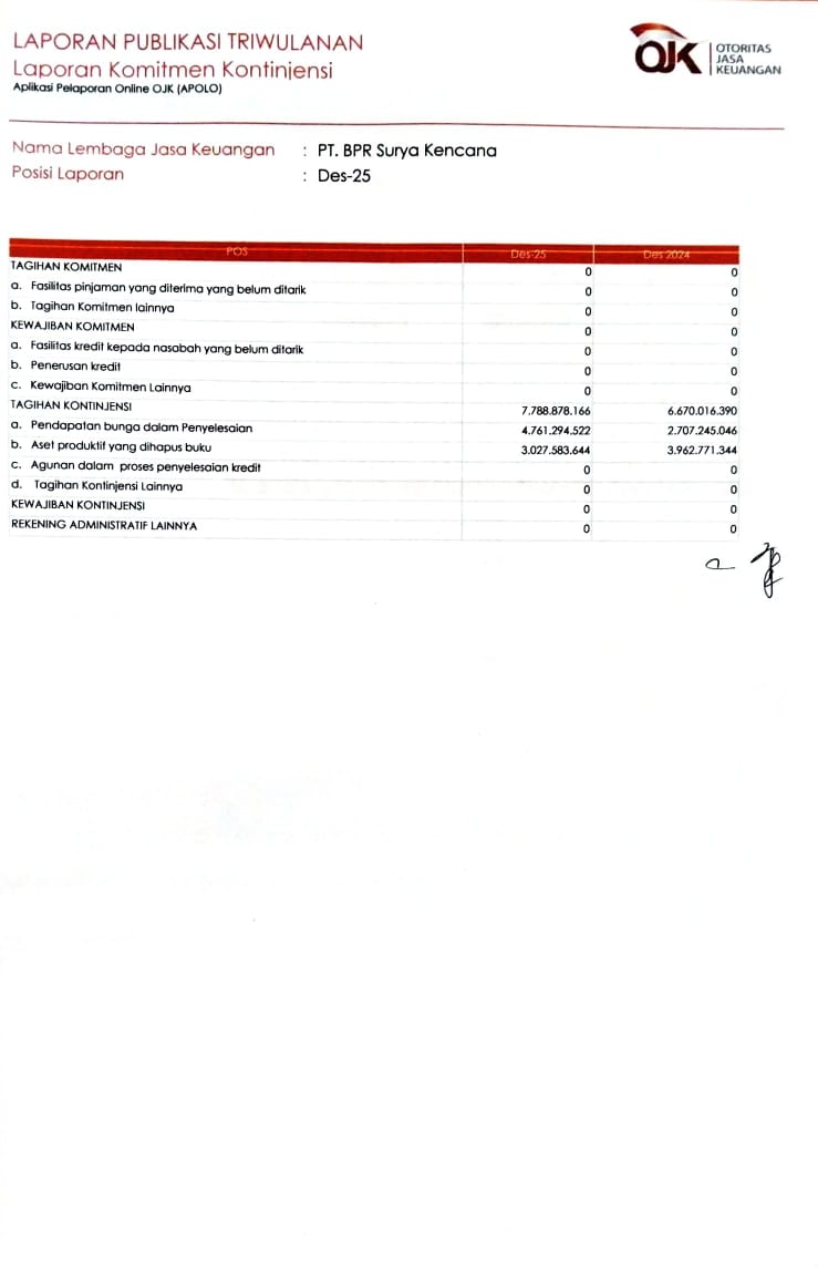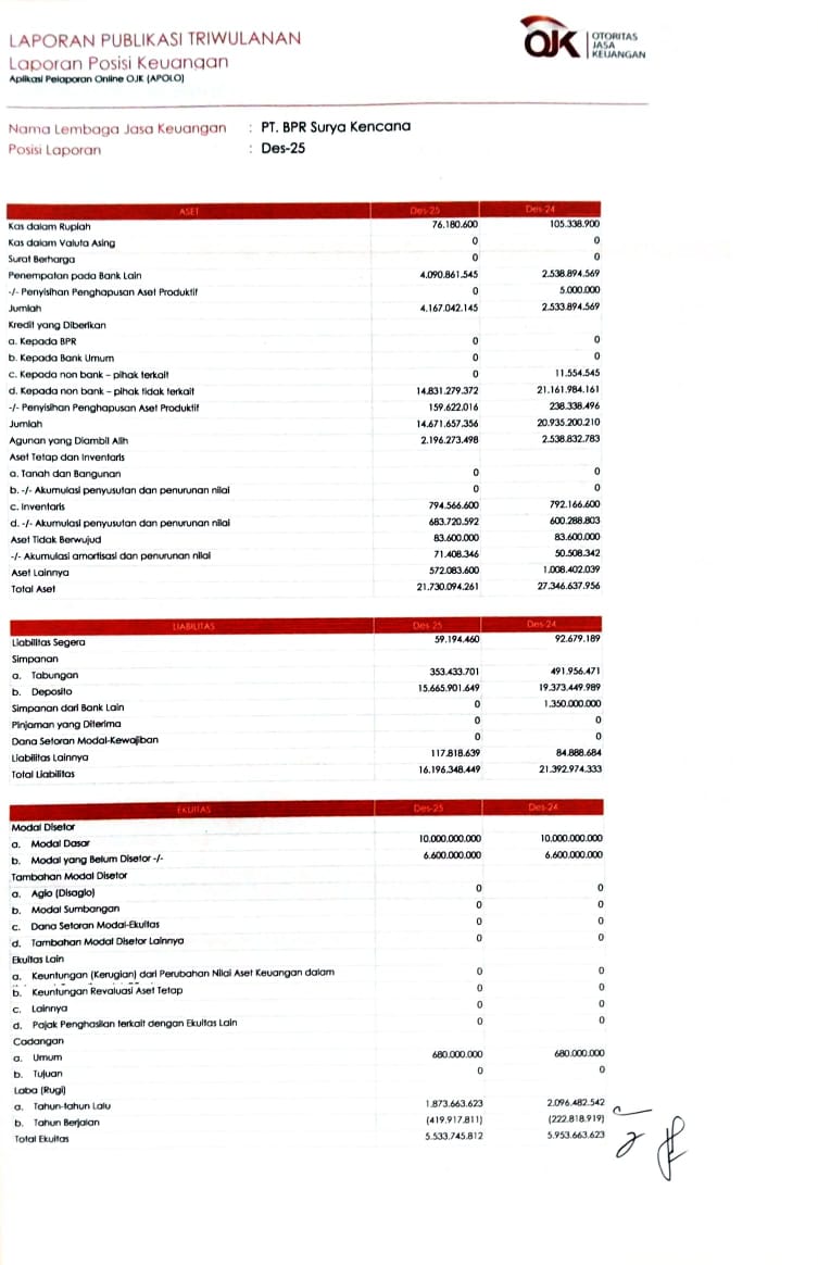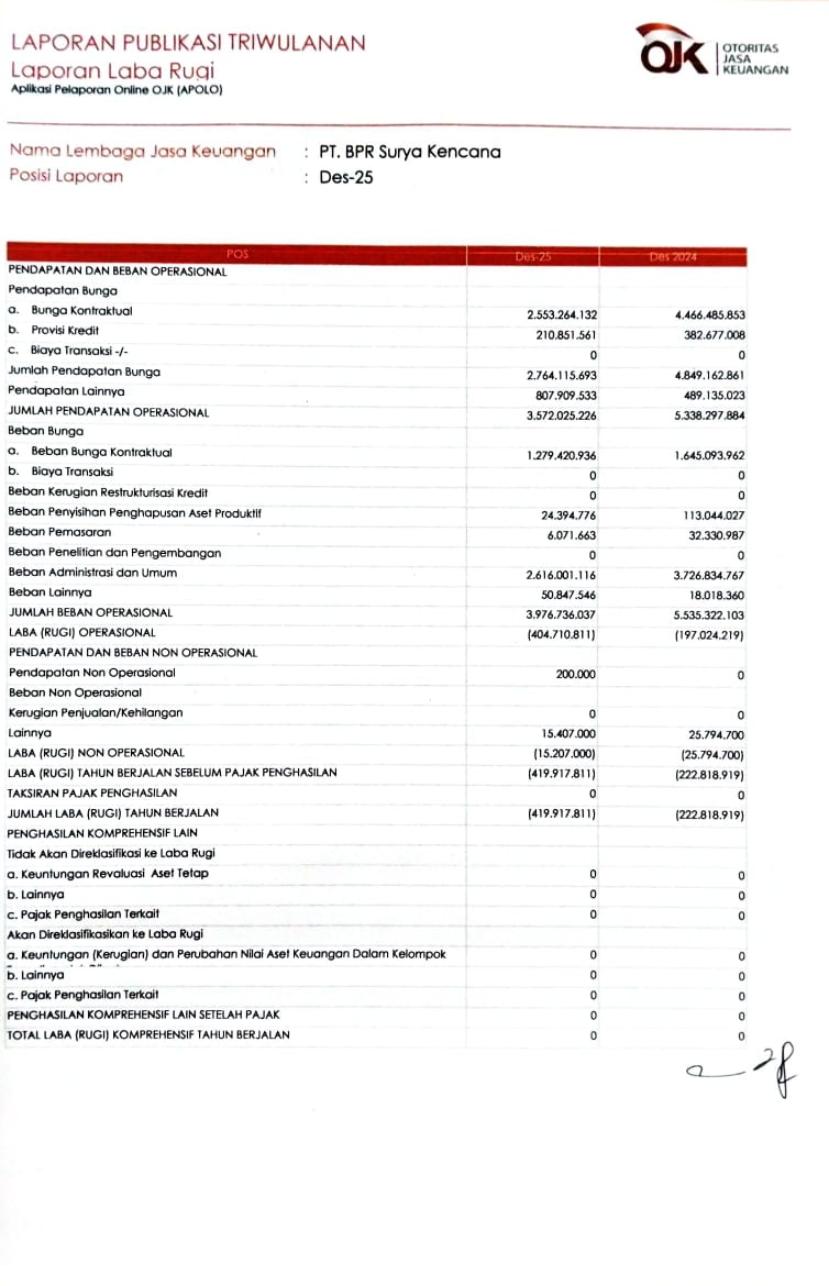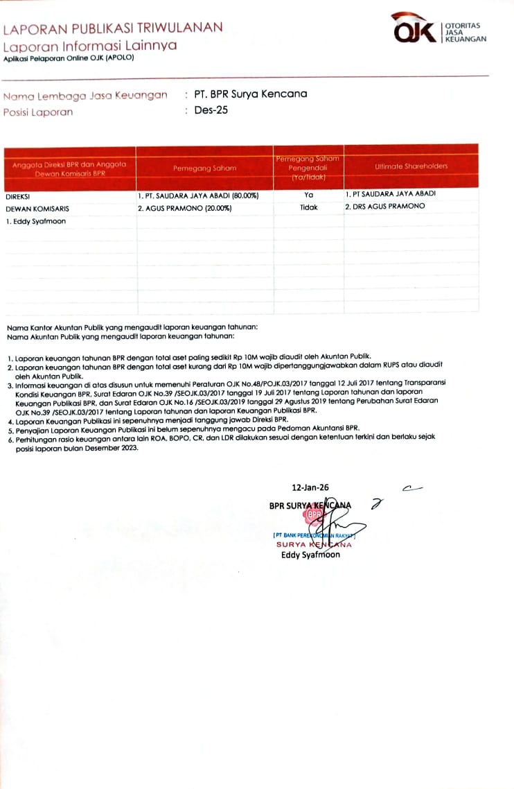 Laporan Publikasi Triwulan IV (DESEMBER 2025) BPR Surya Kencana